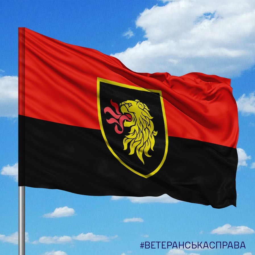Прапор 4 ОТБр ЗСУ червоно-чорний (шеврон лев)