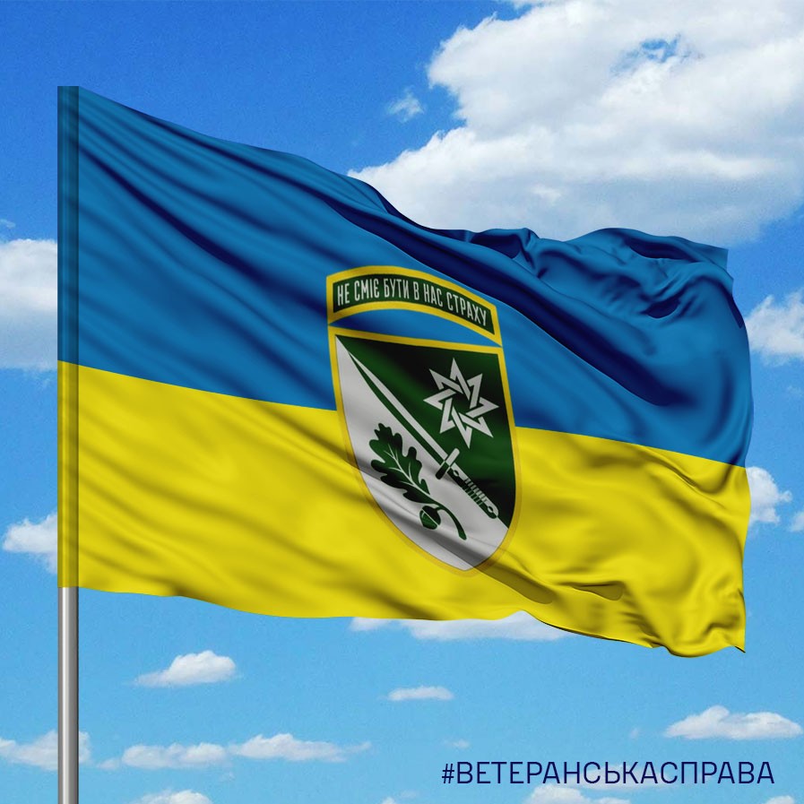 Варіант прапору з новим шевроном 152 окрема єгерська бригада з девізом Не сміє бути в нас страху