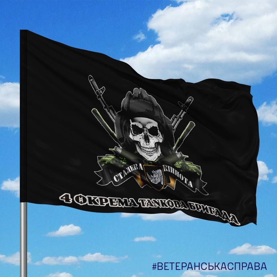 Варіант прапору з новим шевроном 4 Окрема Танкова Бригада з черепом