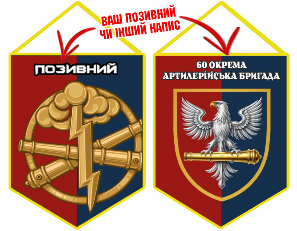 Варіант вимпелу з шевроном 60 окрема артилерійська бригада в кольорах шеврону