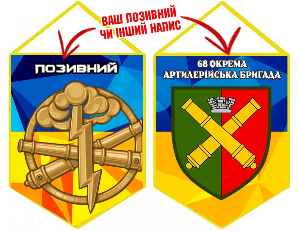 Варіант вимпелу 68 окрема артилерійська бригада з шевроном та знаком Артилерія ЗСУ