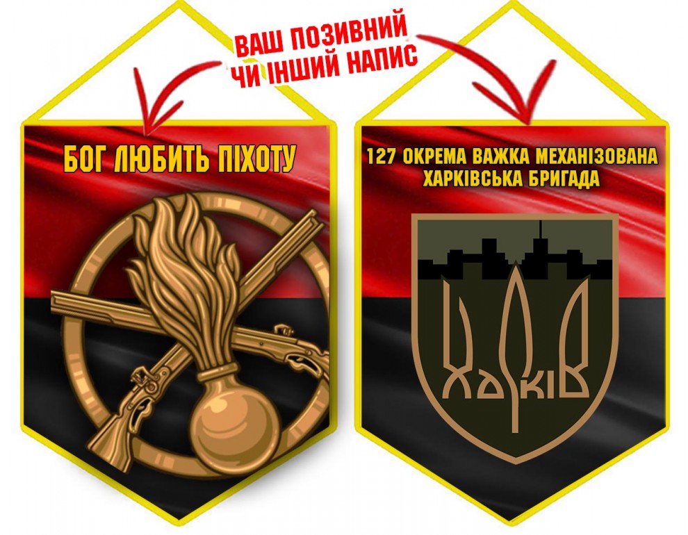 Червоно-чорний варіант вимпелу 127 окрема важка механізована Харківська бригада з девізом Бог Любить Піхоту