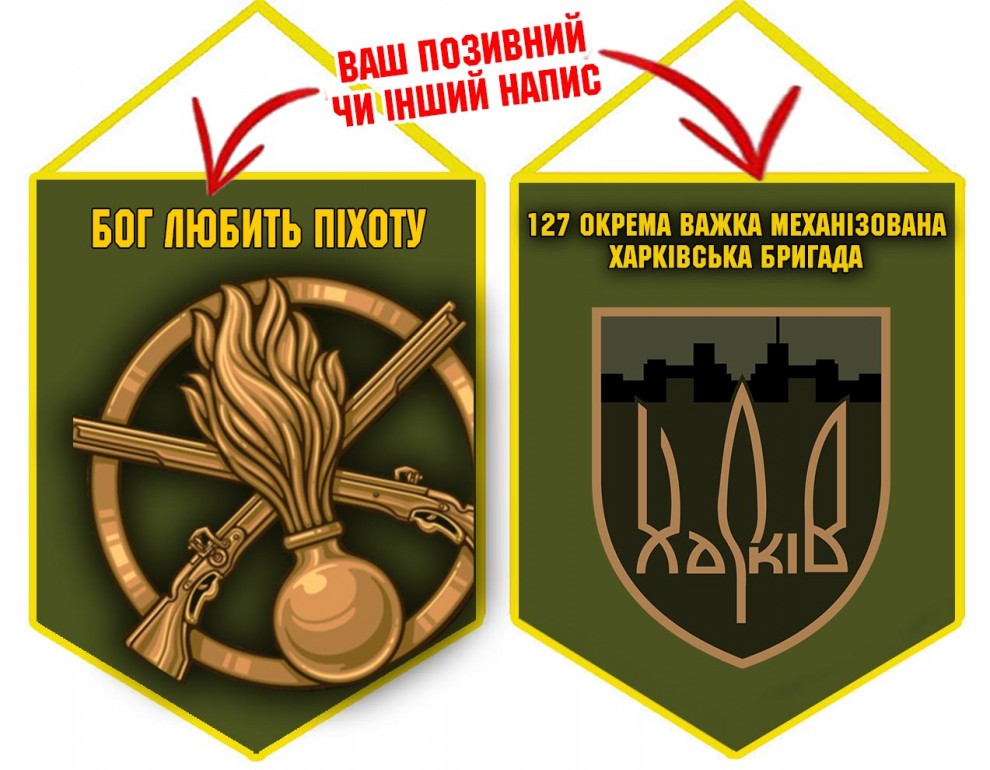 Варіант вимпелу 127 окрема важка механізована Харківська бригада з девізом Бог Любить Піхоту