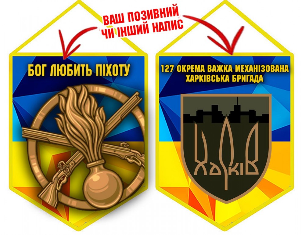 Варіант вимпелу 127 окрема важка механізована Харківська бригада з девізом Бог Любить Піхоту