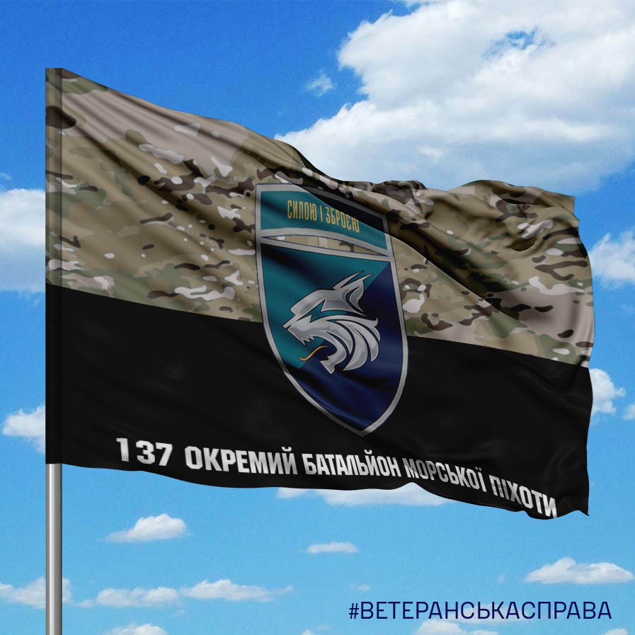 Варіант прапору з новим шевроном 137 окремий батальйон Корпусу морської піхоти України з девізом Силою і Зброєю