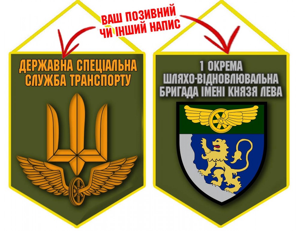 Варіант вимпелу з шевроном 1 окрема бригада шляхо-відновлювальна бригада імені Князя Лева