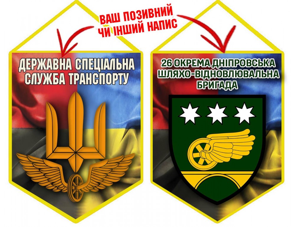 Варіант вимпелу з шевроном 26 окрема шляхо-відновлювальна бригада Державна спеціальна служба транспорту