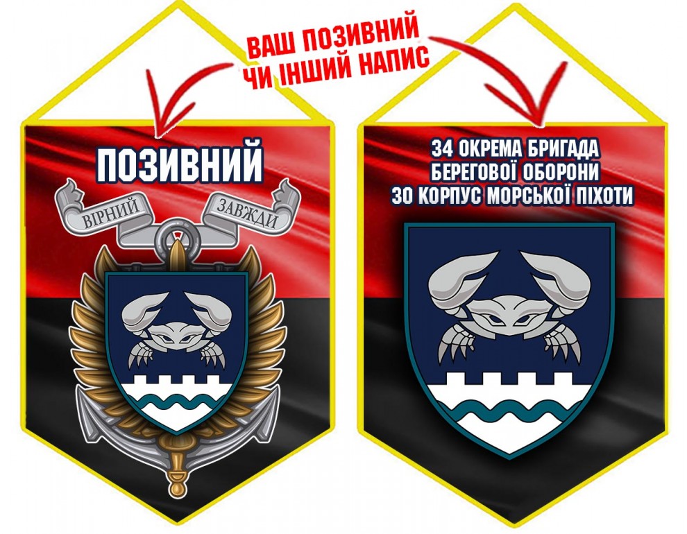 Варіант вимпелу з шевроном 34 окрема бригада берегової оборони 30 Корпус Морської піхоти України