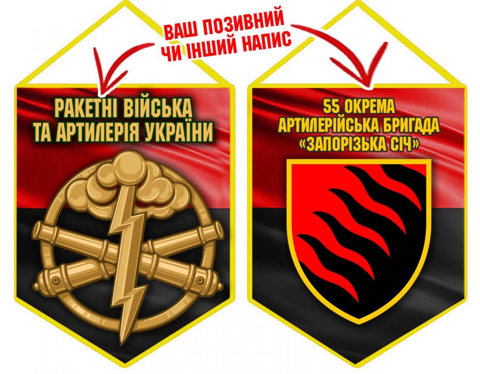Вимпел з шевроном 55 окрема артилерійська бригада «Запорізька Січ» ЗСУ