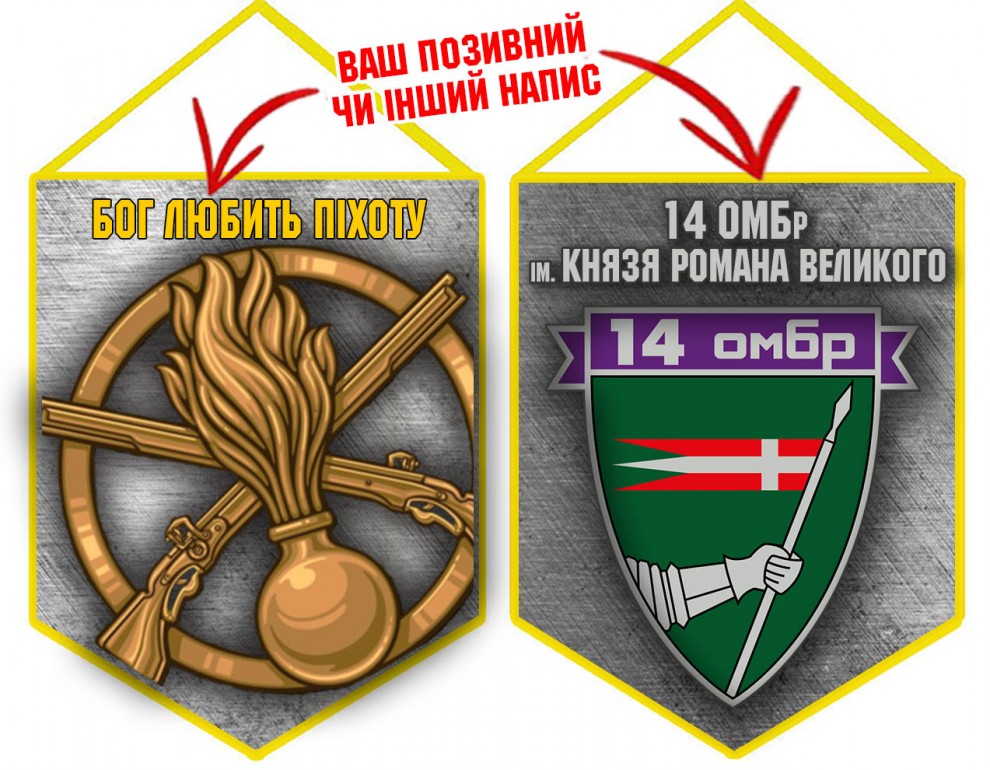 Вимпел з шевроном 14 окрема механізована бригада ім. Князя Романа Великого