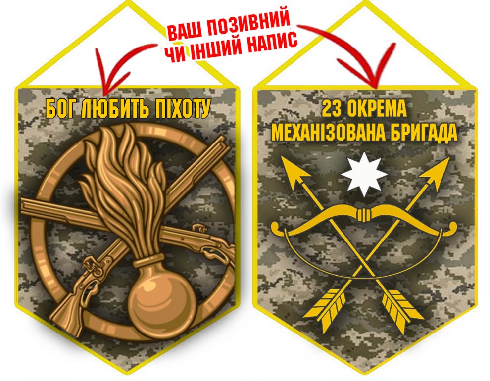 Вимпел 23 ОМБр емблема і знак Піхоти піксель