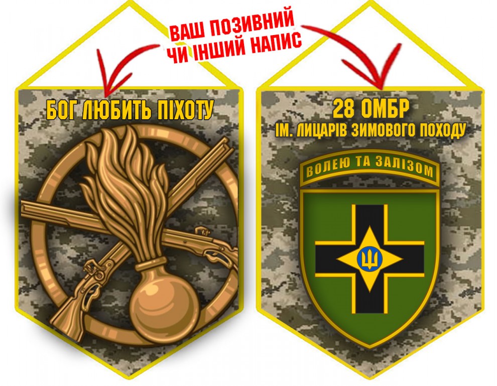 Вимпел 28 ОМБр і знак Піхоти піксель