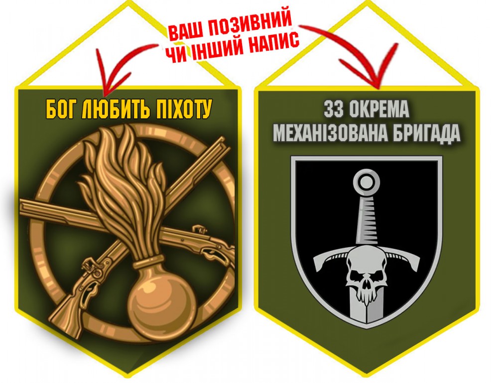 Вимпел 33 ОМБр і знак Піхоти олива