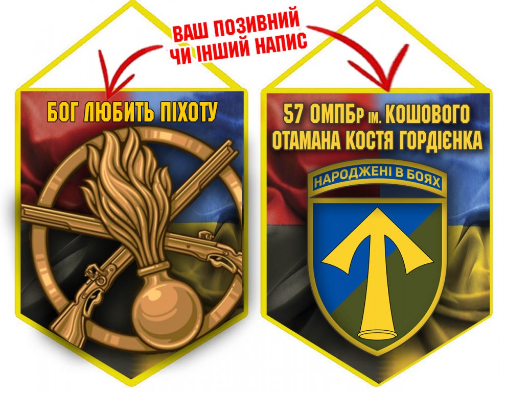 Вимпел з шевроном 57 окрема мотопіхотна бригада імені кошового отамана Костя Гордієнка