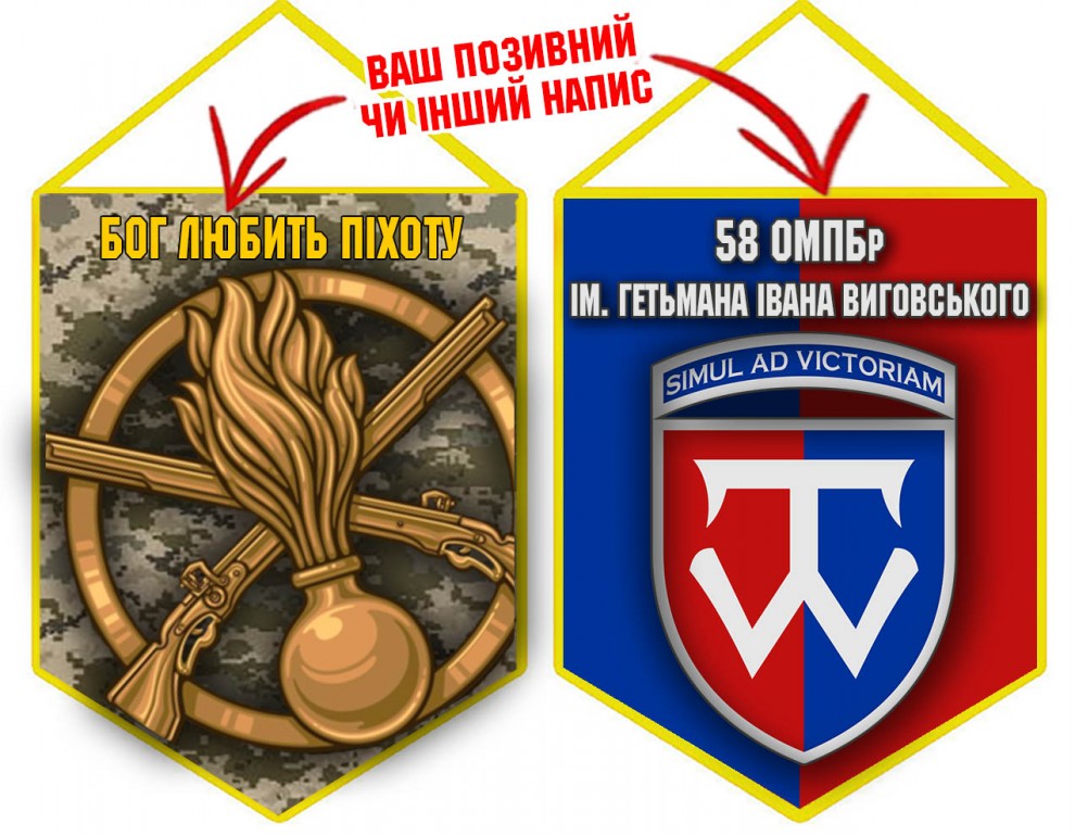 Вимпел 58 ОМПБр і знак Піхоти 2 кольори