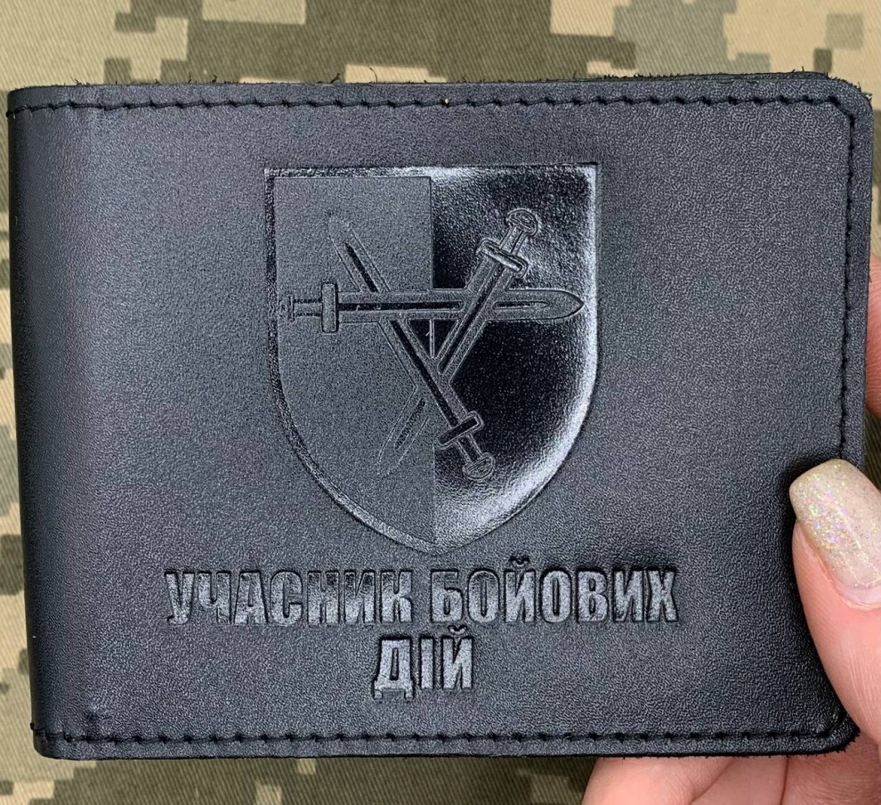 Обкладинка Учасник Бойових Дій з тисненням шеврон 32 окрема механізована бригада