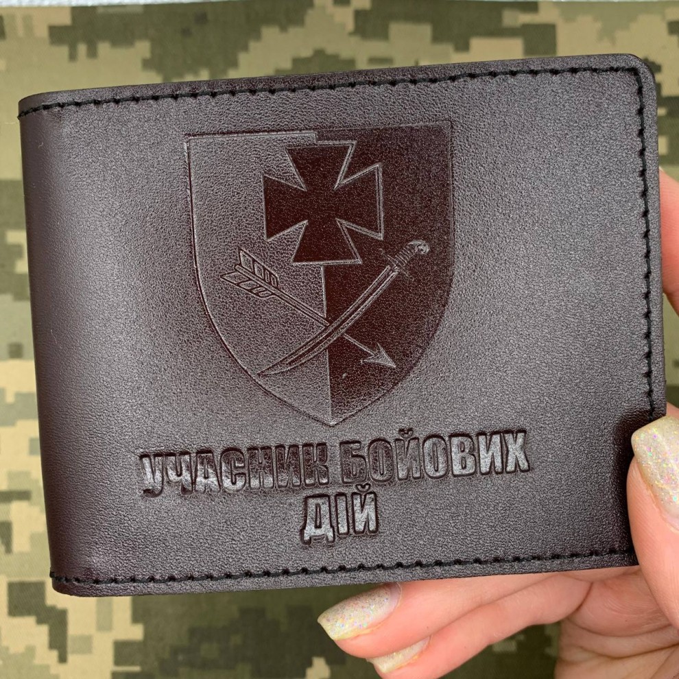 Обкладинка Учасник бойових дій з тисненням шеврон 44 окрема механізована бригада