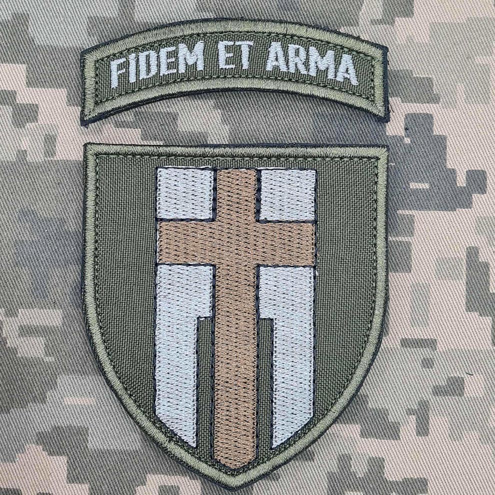 Польовий варіант шеврону 160 окрема механізована бригада ЗСУ з девізом FIDEM ET ARMA (перекладається як вірність і зброя або віра і зброя)