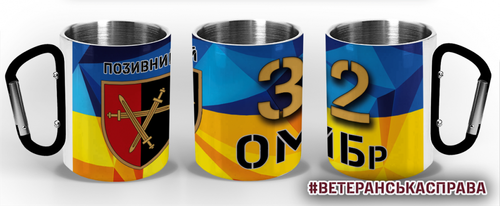 Термочашка з принтом з шевроном 32 окрема механізована бригада