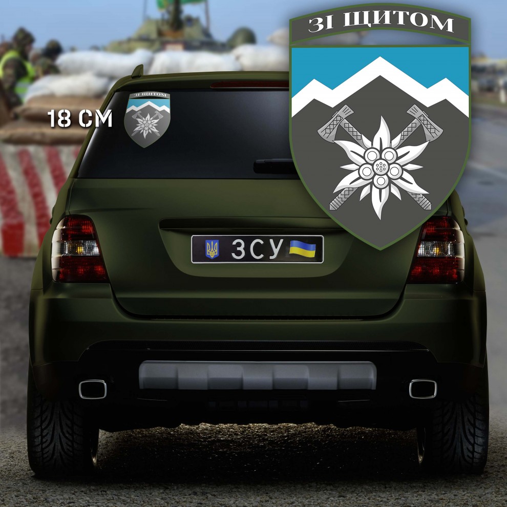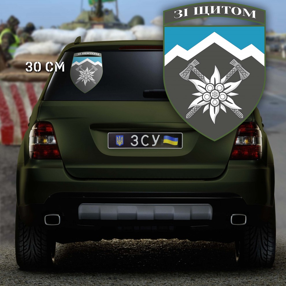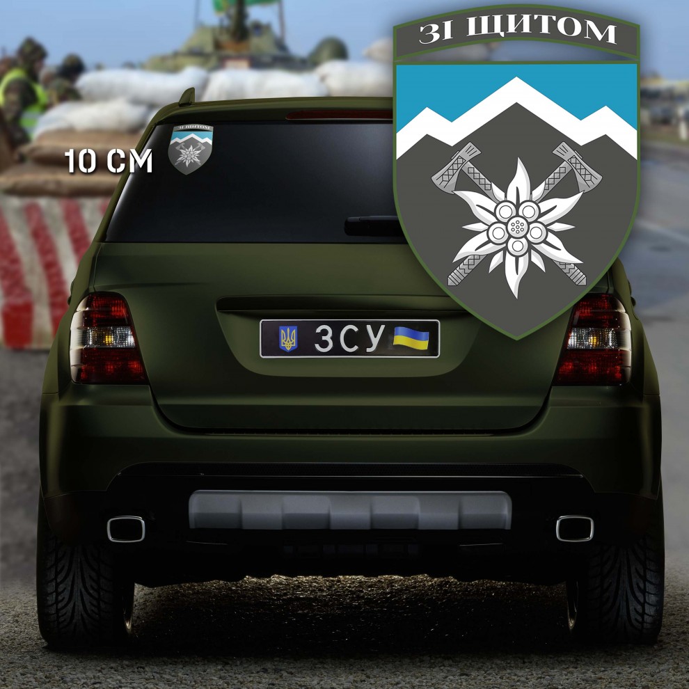 Наліпка з шевроном 10-ої Окремої Гірсько-Штурмової Бригади з девізом “Зі щитом”