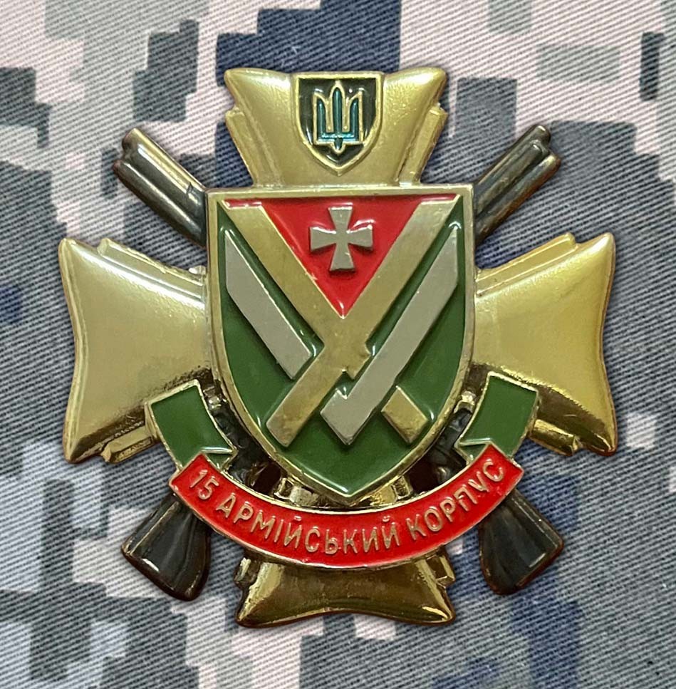 Знак з шевроном 15 Армійський Корпус Сухопутних військ ЗСУ